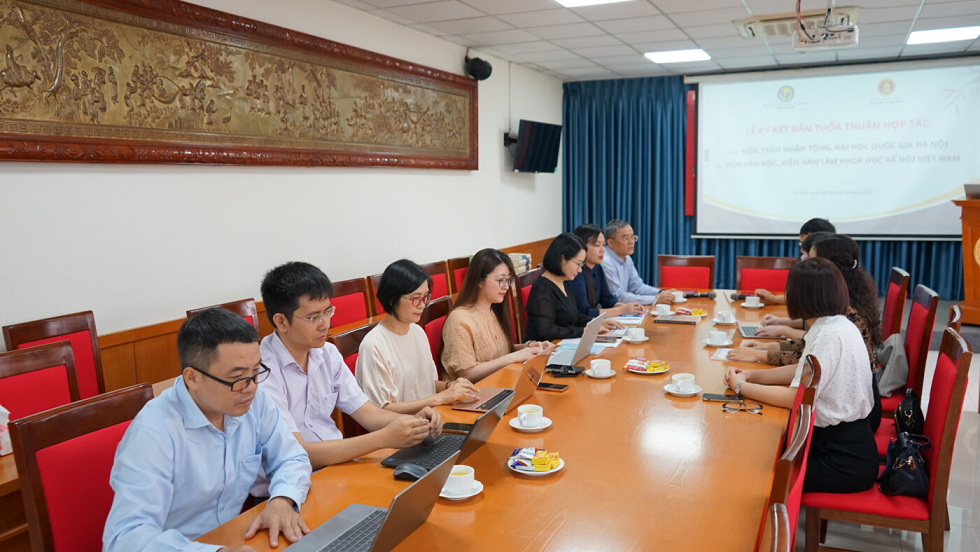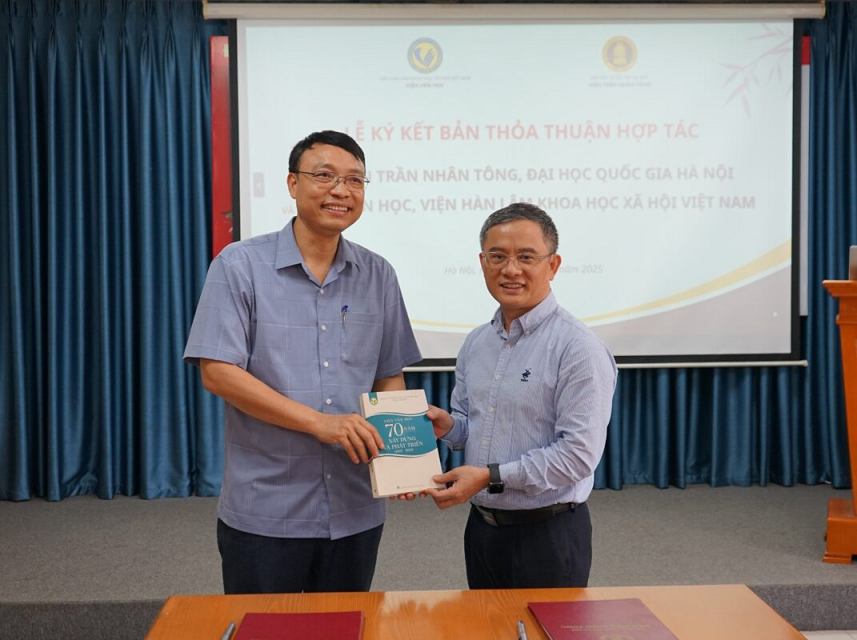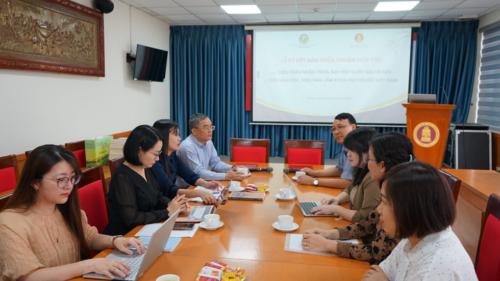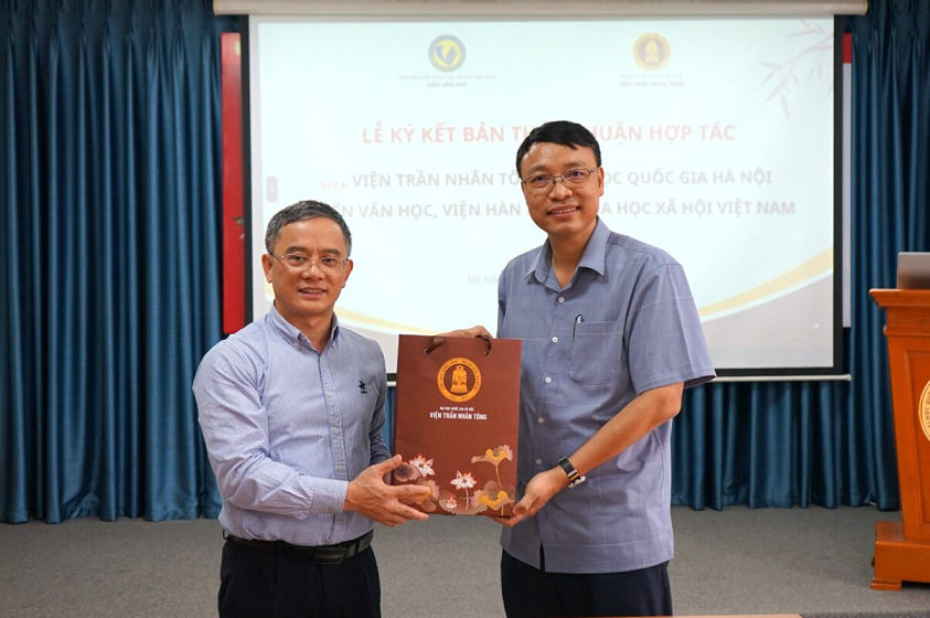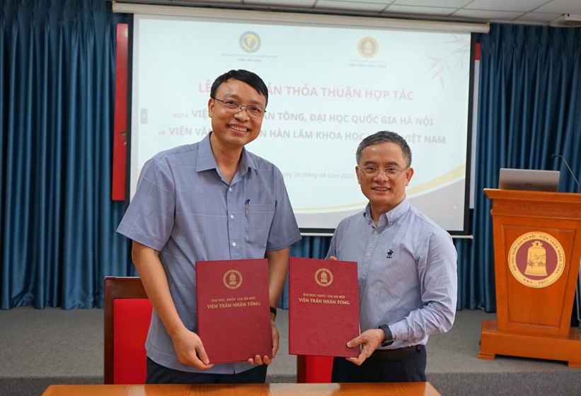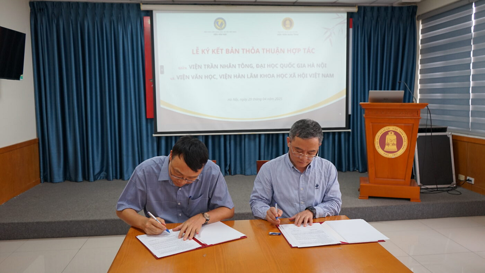 Ngày 29/4/2025 tại trụ sở chính Viện Trần Nhân Tông đã diễn ra Lễ Ký kết thỏa thuận hợp tác giữa Viện Trần Nhân Tông và Viện Văn học. Đây là sự kiện đánh dấu sự hợp tác, phối hợp triển khai các hoạt động hợp tác trong lĩnh vực hai bên cùng quan tâm trên tinh thần hữu nghị nhằm thúc đẩy sự nghiệp phát triển chung về đào tạo và nghiên cứu khoa học, công tác văn hóa, xã hội mà hai bên cùng quan tâm. Bản thỏa thuận hợp tác mang tính chất là khung pháp lý chung cho sự hợp tác của hai bên và là nền tảng để thảo luận các chương trình hợp tác cụ thể chi tiết hơn.