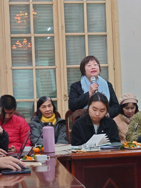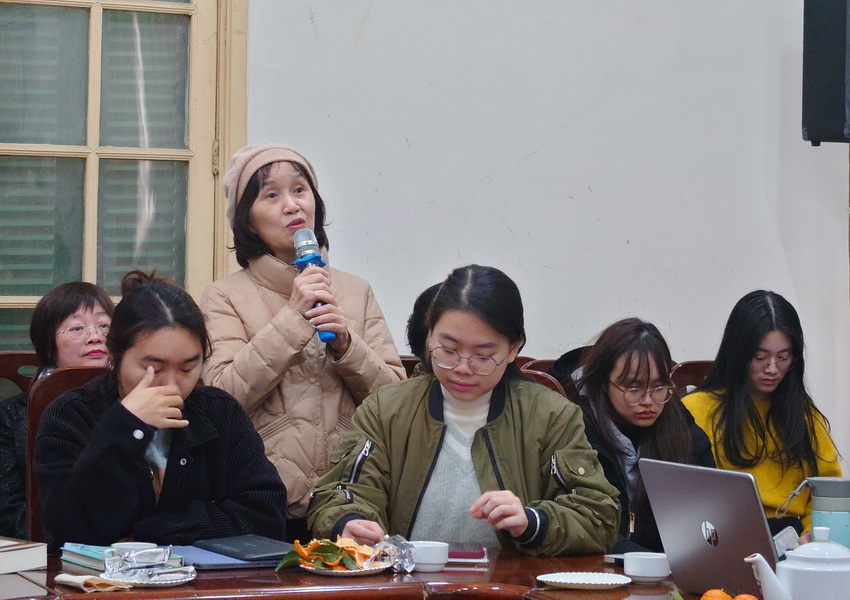 Buổi thuyết trình đã nhận được nhiều ý kiến trao đổi từ phía những người tham dự: TS. Trần Ngọc Hiếu (Khoa Ngữ văn, Trường Đại học Sư phạm Hà Nội), TS. Lê Thành Trung (Trường Đại học Ngoại ngữ, Đại học Quốc gia Hà Nội), PGS. TS. Trần Trọng Dương (Khoa Tiếng Việt và Văn hóa Việt Nam, Trường Ngoại ngữ – Du lịch, Đại học Công nghiệp Hà Nội), TS. Đoàn Ánh Dương (Viện Văn học), TS. Trần Hạnh Mai (Khoa Ngữ văn, Trường Đại học Sư phạm Hà Nội), Giám đốc NXB Phụ nữ Việt Nam Khúc Thị Hoa Phượng…