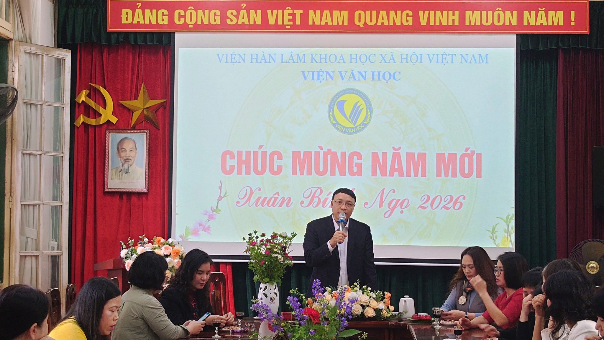 TS. Nguyễn Huy Bỉnh – Phó Viện trưởng phụ trách Viện Văn học phát biểu chúc mừng năm mới tới toàn thể viên chức, người lao động Viện Văn học nhân dịp Xuân mới Bính Ngọ 2026