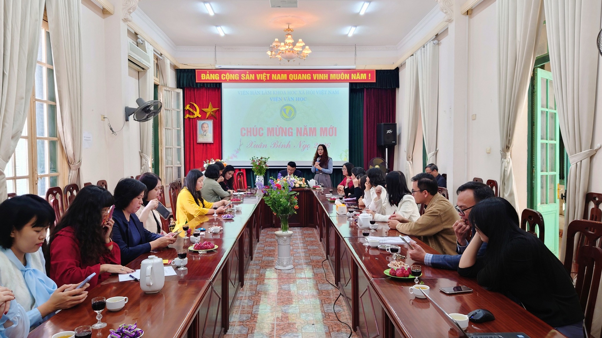Buổi gặp mặt kết thúc trong niềm hân hoan và quyết tâm. Khí thế của ngày đầu xuân Bính Ngọ hứa hẹn sẽ là động lực để Viện Văn học hoàn thành xuất sắc các nhiệm vụ chính trị, khoa học trong năm 2026, khẳng định vị thế là cơ quan nghiên cứu văn học hàng đầu của cả nước.