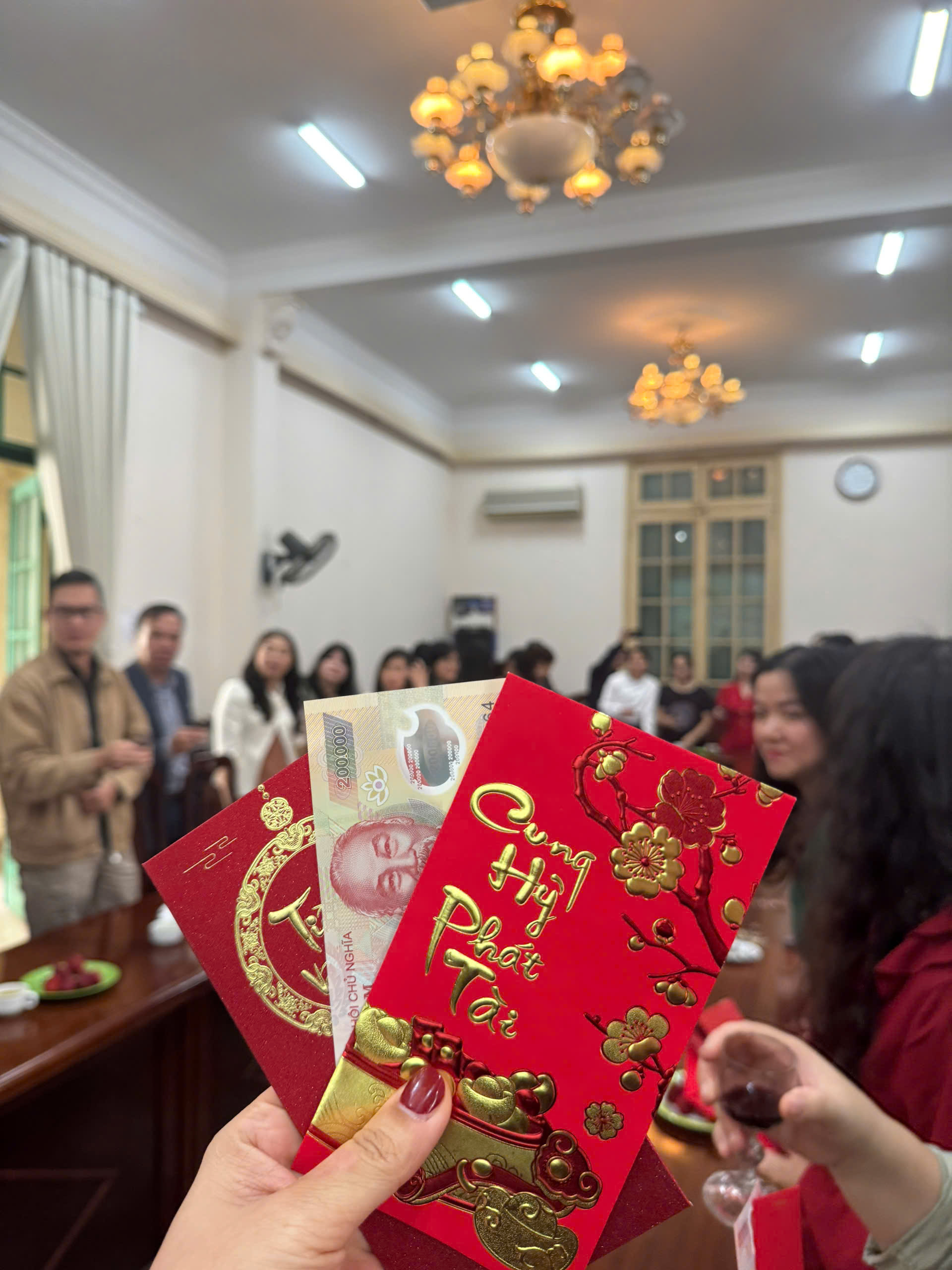 Phần xúc động nhất của buổi gặp mặt là khoảnh khắc các cán bộ Viện Văn học trao nhau những cái bắt tay ấm áp và những lời chúc thân tình. Tiếng cười nói rộn rã cùng những phong bao lì xì đỏ may mắn đã tạo nên một bức tranh tập thể gắn bó và đầm ấm.