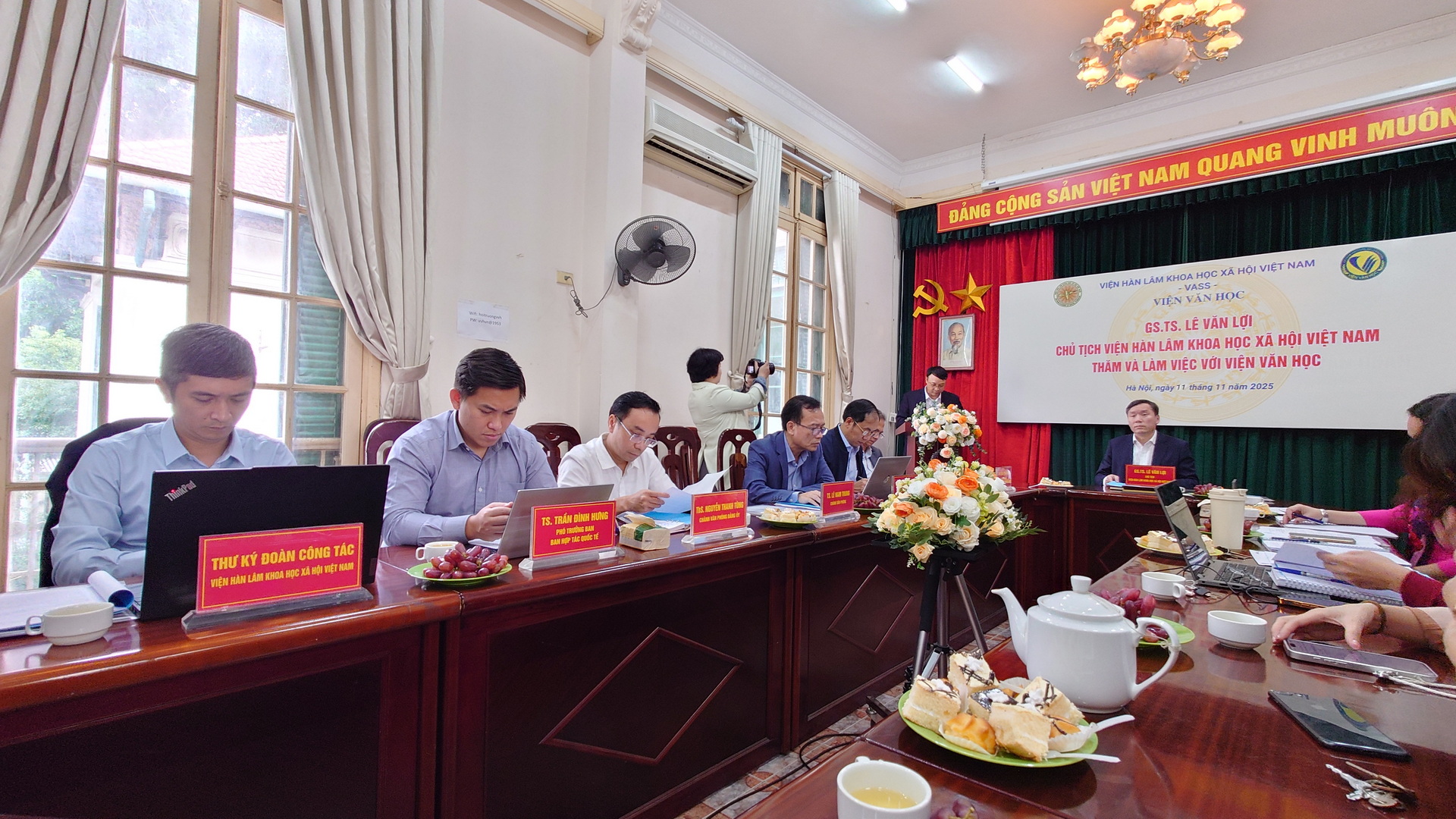 Chùm ảnh: GS.TS. Lê Văn Lợi, Bí thư Đảng ủy, Chủ tịch Viện Hàn lâm Khoa học xã hội Việt Nam cùng đoàn công tác Viện Hàn lâm Khoa học xã hội Việt Nam về thăm và làm việc với Viện Văn học, ngày 11/11/2025.